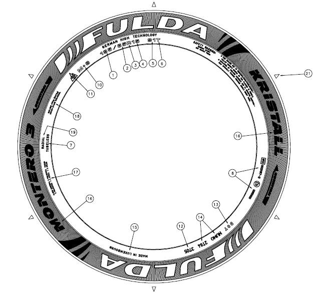 Imaginea de mai jos arata secventa de inscrisuri ce se gaseste pe cauciuc. In continuare vom explica in detaliu fiecare simbol asociat unei cifre.