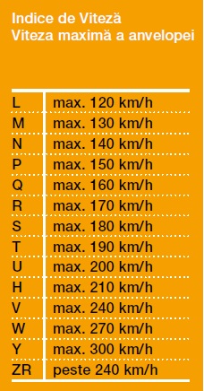 6. Indicele de viteza indica viteza maxima la care este proiectata sa ruleze in siguranta anvelopa si este stabilita de producator.